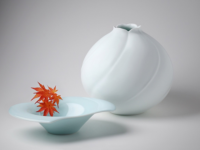 白磁と青磁が静かに佇む空間で、秋のひとときをお楽しみください。