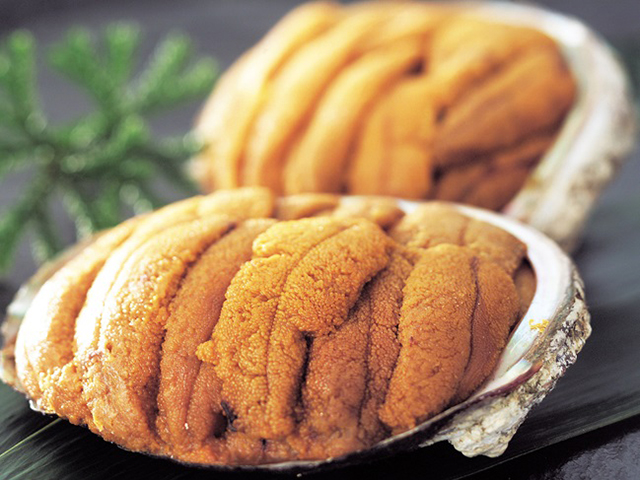 うにをアワビの殻にのせ、焼き上げた一品。うにの甘味と風味をお楽しみください。