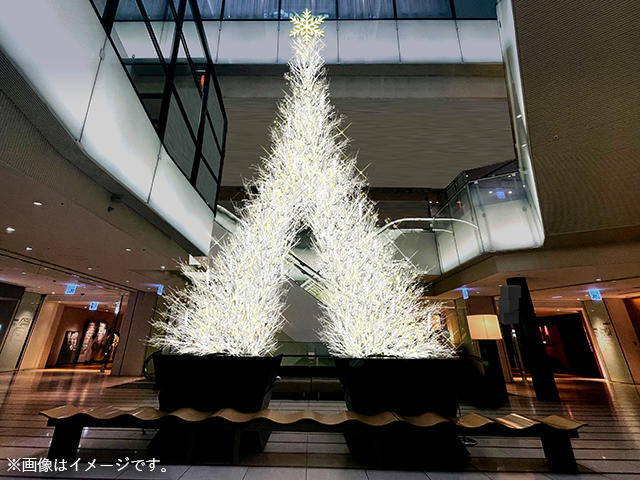ナチュラルで本格的な、高さ約6mの「フォレストツリー」が登場。ツリーのベースはもみの木であるバルサムファーの生木を使用し、自然素材が醸し出す本物感や、光と風に包まれた森の中に佇むクリスマスツリーをイメージしました。