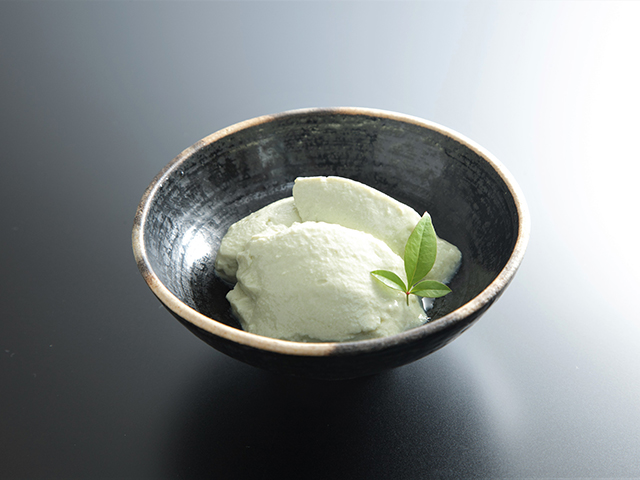 強い甘みと上品な味わいが特徴の青大豆「岩手みどり」を使用した、 近喜の代表商品。やわらかい汲みだし豆腐です。