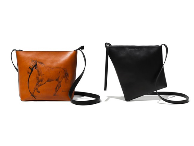 牛革に焼き色で馬の姿を描いた、アート作品のようなバッグ。今にも駆け出しそうな馬の表情や、風になびくたてがみ、尻尾まで繊細なタッチで表現しました。