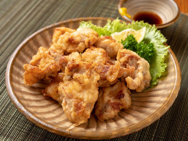 大分県を代表する郷土料理の「とり天」。若鶏のモモ肉を使用し、外はサクサク、中はジューシー!ポン酢でさっぱりとお楽しみください。