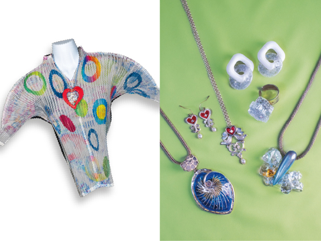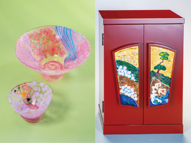 長谷川淑子氏の厨子やガラス胎七宝の器、1点ずつコラージュプリントしたアートウェア、七宝焼きを中心としたさまざまなアクセサリーなどをご紹介いたします。
