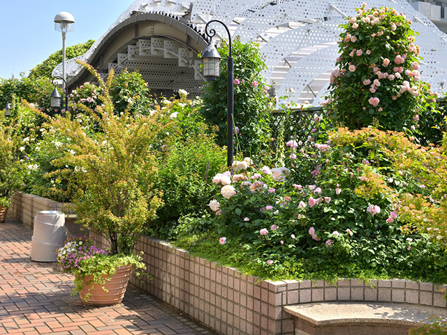 本館3Fローズガーデンには、色とりどりのバラが咲き誇り、やわらかな香りとともに、初夏ならではの景色が広がります。