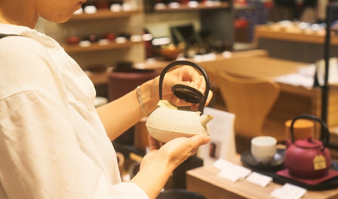 カラフルな南部鉄器の急須や、独自の感性が光る作家ものの飯碗、手仕事が美しい竹籠。<WAGOTO>には、暮らしのさまざまなシーンを彩る、上質なアイテムが集められています。