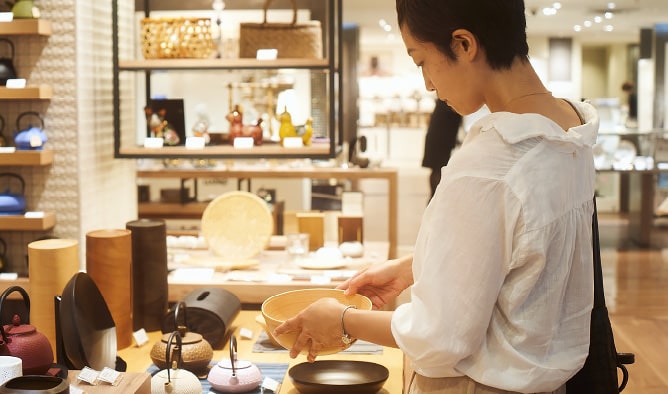 世界に誇る日本のものづくりをテーマに、素材、伝統的な技術や技法、機能性などにこだわり、日本各地から集めた暮らしの道具を紹介する高島屋の自主編集売場。伝統工芸品や生活雑貨、作家や職人の手しごとのものなど、今の暮らしを豊かに楽しむアイテムが揃う。