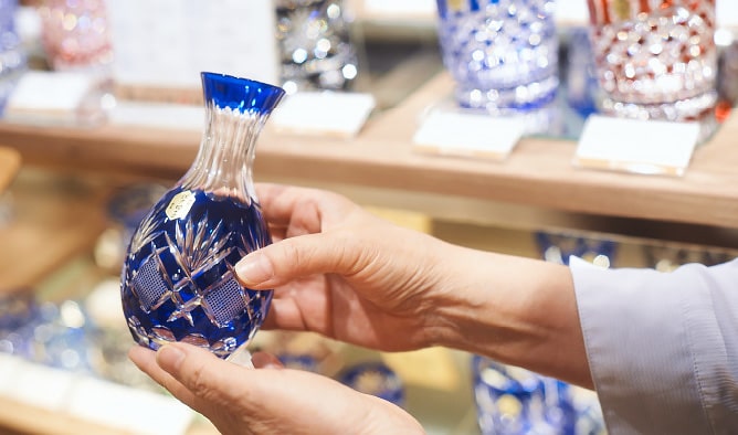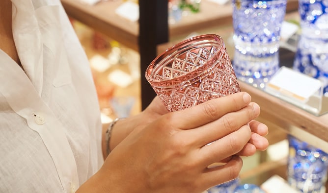 「江戸時代後期に、江戸のビードロ屋加賀屋久兵衛がガラスの表面に彫刻したのがはじまりと言われています。それから約200年、切子職人たちの努力によって大切に守り受け継がれているんですよ。」