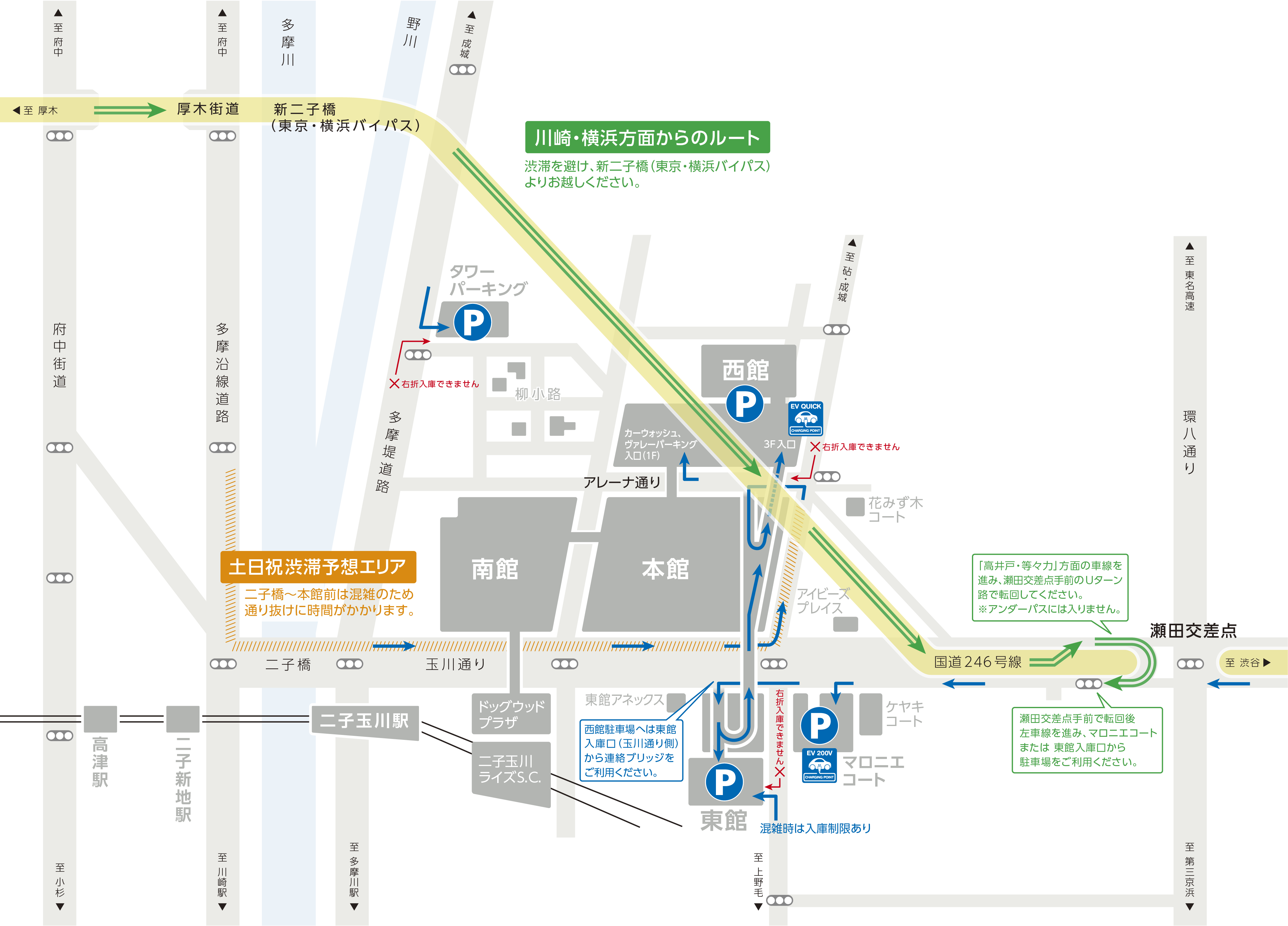 - ●東急田園都市線/東急大井町線 「二子玉川駅」下車