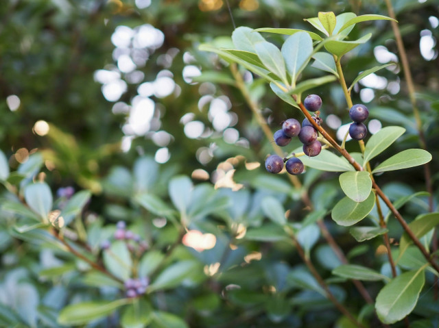 ブルーベリーにそっくりな実ですが、硬く食用には向いていないようです。