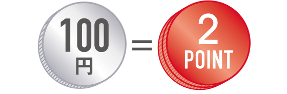 100円毎に2ポイントたまる!