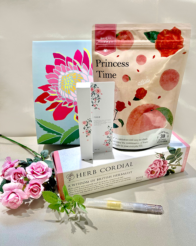 花の女王・ローズを使用した、人気の食品とハーブドリンク、ネイルオイルのギフトセットです。