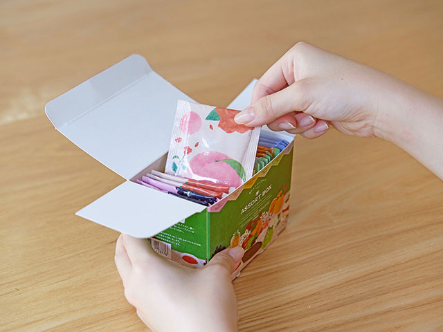 内容:アサイーラズベリー/プリンセスタイム/マヌカハニージンジャー/エルダーフラワーマスカット/エキナセアベア/ムーンガーデン 各2g×3袋×6種