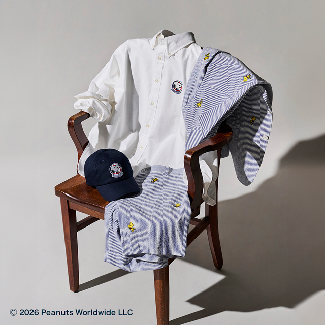 ブランドの伝統的なアメリカントラッドスタイルに、「PEANUTS」のユーモアと遊び心を融合させたアイテムが揃います。