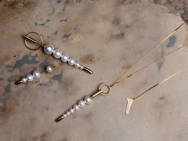■(写真中央)PUNCTURE バック スピア アコヤパール ピアス 154,000円