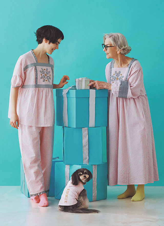 ギンガム柄に、ジオメトリックな花の刺繍が印象的なナイトウェアシリーズ。