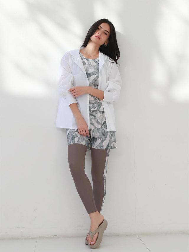 インナーと一体型のトップスは、ボトムと連結できる仕様で、入水時もめくれにくく安心。紫外線カット率99.1%のUVアウターは、軽量でストレッチ性も高くタウンユースにもおすすめです。