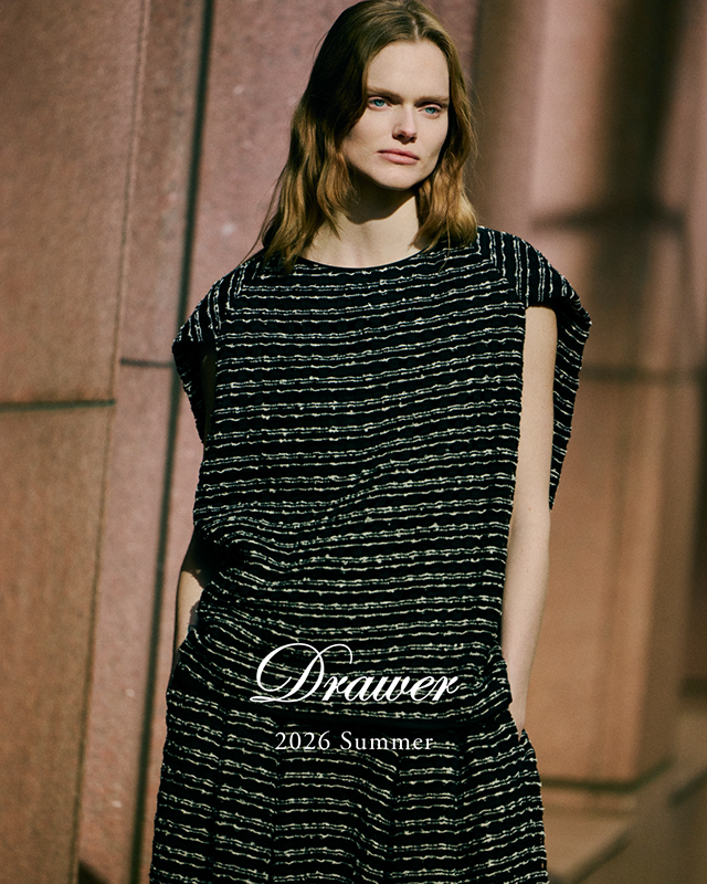 ショップ名の「DRAWER(ドゥロワー)」は、引き出しの上段に上質な物を入れたという英国の風習に由来します。際立って上質で洗練された逸品と、それを引き立たせるコーディネートや店舗空間を通して、特別な高揚感を感じていただけるお店です。