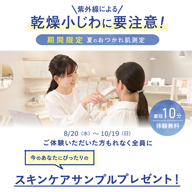期間中、紫外線による乾燥ダメージを測定する「夏のおつかれ肌測定」を実施しております。