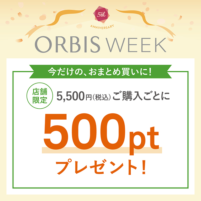 税込5,500円以上ご購入ごとに、オルビスポイントを500ポイントプレゼントいたします。