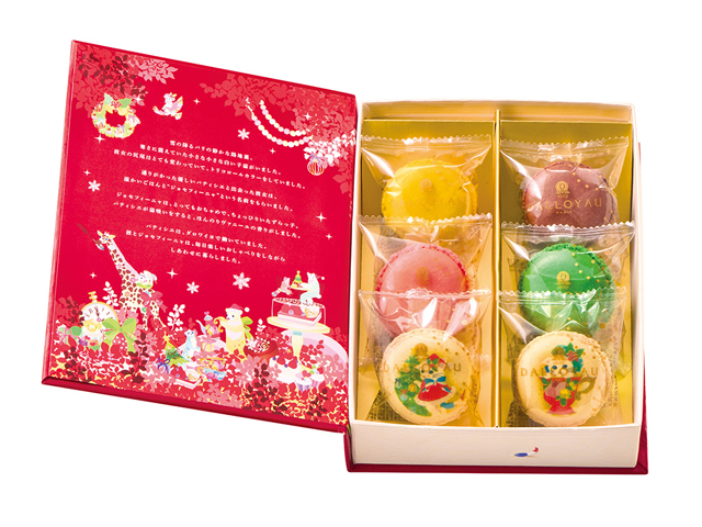 まるで絵本のように、ホラグチカヨさんの世界観が広がるブック型の化粧箱に、人気のマカロンを詰め合わせました。