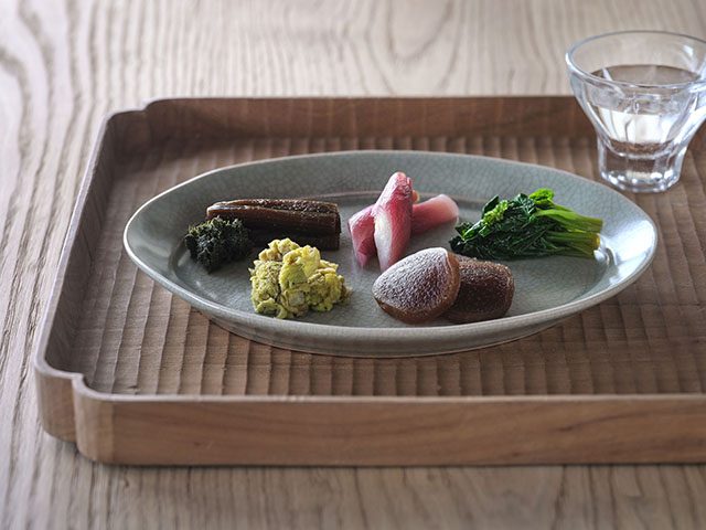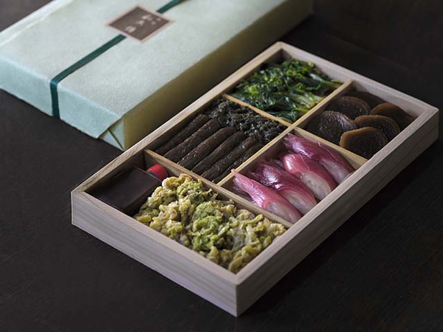 季節の変わり目に身体に取り入れたい、にがみ野菜で仕立てた一折。