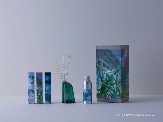 作品をイメージした香り『網代の風(あじろのかぜ)』のディフューザーと、お香の香りに合わせた3種類の映画オリジナルパッケージのインセンスをご用意しております。