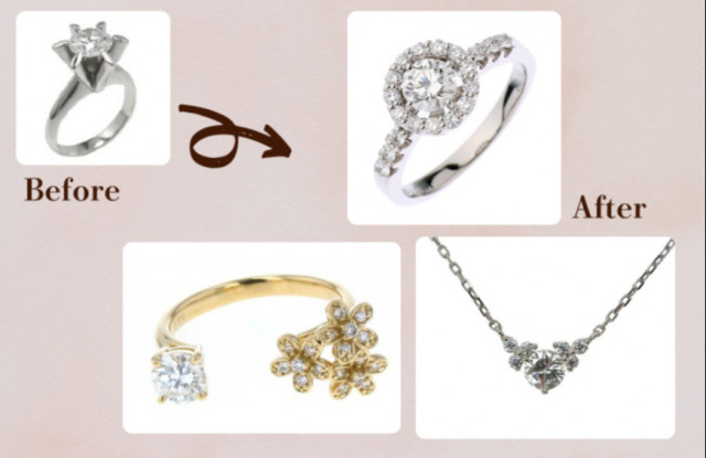 眠ったままの婚約指輪や、お譲り受けのジュエリーを「今」使えるジュエリーにリフォームしませんか?その場でデザイン画を提案させていただきます。