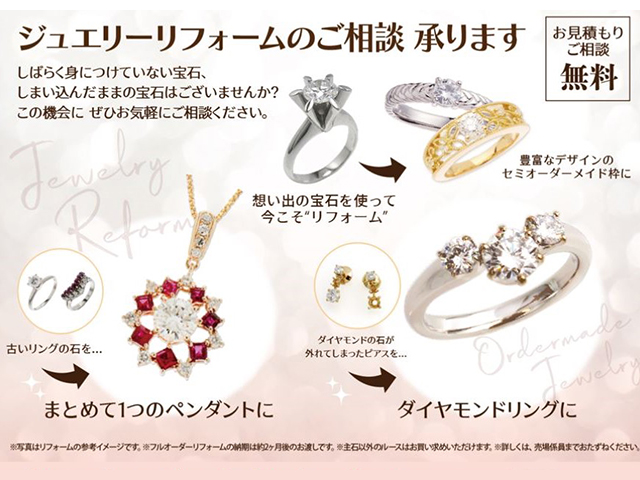 お手持ちのジュエリーの品質を詳しくお調べし、整理、リフォーム、ご売却などの提案をいたします。何の石かわからないジュエリーなどもお気軽にご相談ください。