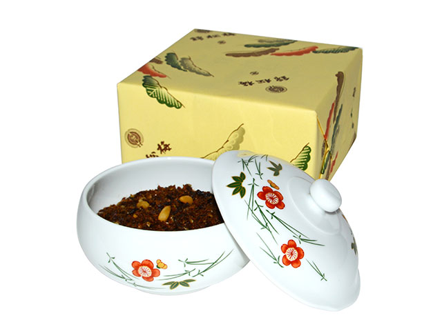 縁起の良い「松竹梅」をデザインした、季節限定の有田焼容器。