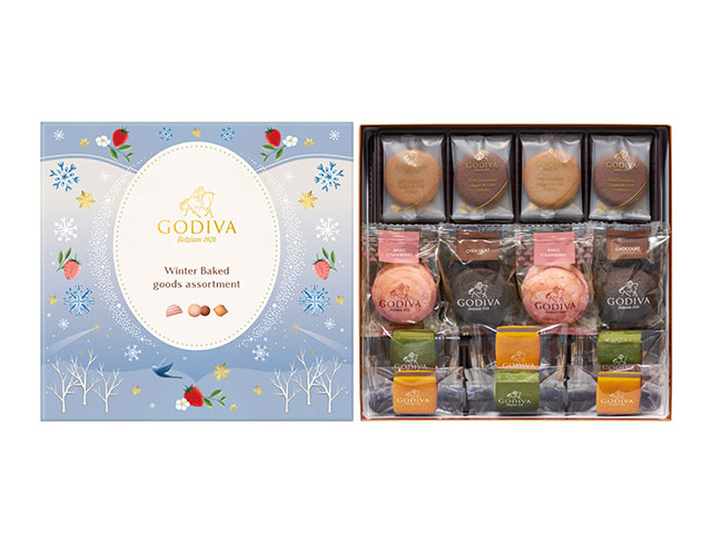 内容:サブレショコラ(ミルクチョコレートキャラメル/抹茶&ホワイトチョコレート)各3個、ラングドシャクッキー(ミルクチョコレート/ダークチョコレート)各4枚、ドーム バームクーヘン(ショコラ/あまおう苺)各2個