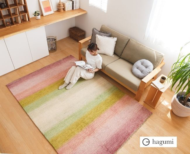 ウールを手仕事で織り上げた日本の住まいに合うデザインと品質が特徴です。上質な造りと、健康、環境に配慮した素材や生産工程のため安心して長くお使いいただけます。