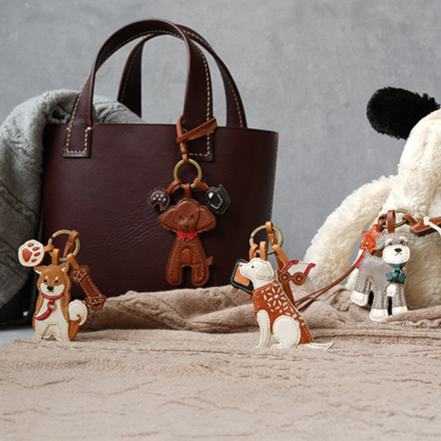 レザーのやさしい風合いと綺麗な発色で毎日をワクワク楽しい気分にしてくれます。可愛いチャームをバッグやキーに付けてお楽しみください。