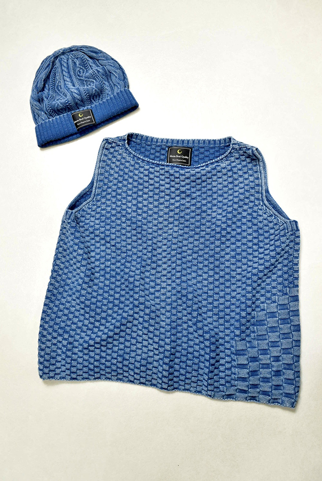 長年にわたり培ってきた技術と経験を活かし、一点一点丁寧に染め上げたインディゴ染めのニットは、使い込むほどに味わいを増し、日常にさりげない上質さを添えてくれます。