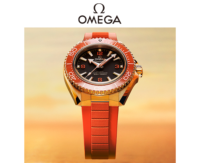 〈オメガ〉がもつダイバーズウォッチの歴史にオマージュを捧げる「シーマスタープラネットオーシャン」は、探検、革新、そしてスタイルにコミットする〈オメガ〉の姿勢を体現しています。このモデルは、ポリッシュ&ブラッシュ仕上げのステンレススチール製ケースに、ホワイトのハイブリッドセラミックのダイビングスケールを施したポリッシュ仕上げのオレンジセラミック製ベゼルリングと、ポリッシュ仕上げのグレート5チタン製インナーリングを備えます。コーアクシャル マスター クロノメーター キャリバー8912搭載。ステンレススチール製のコマがケースと繋ぐ、フォールディングクラスプ付きのオレンジラバーストラップが合わせられています。時計の裏面にはポリッシュ&ブラッシュ仕上げのグレート5チタン製ねじ込み式ケースバックに、〈オメガ〉の有名なシーホースのエンブレムを見ることができます。