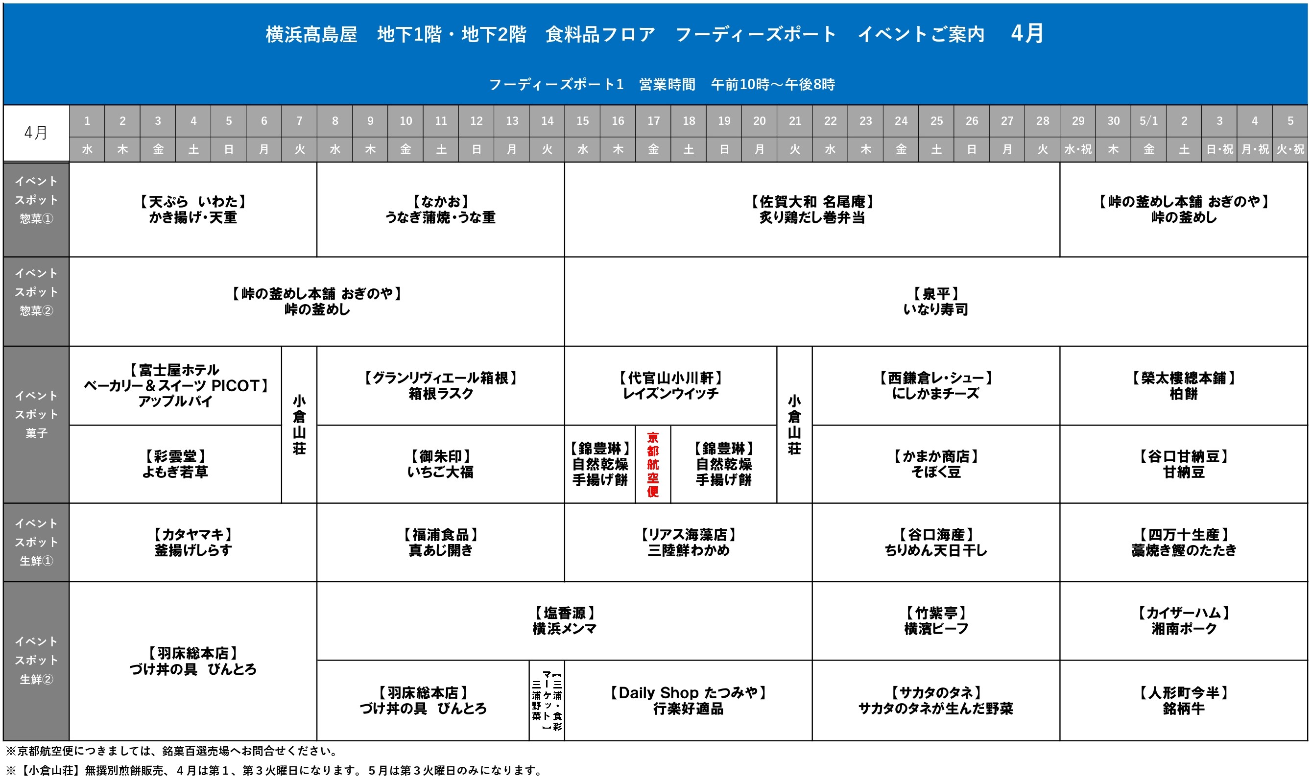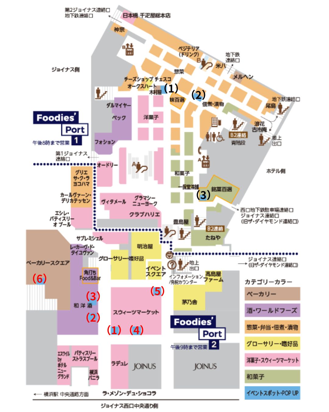 ■Foodies' Port1 営業時間:午前10時~午後8時(1)イベントスポット 惣菜1(2)イベントスポット 惣菜2(3)イベントスポット 菓子
