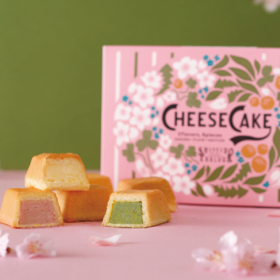 桜の⾹りのビスキュイ⽣地で、桜の花由来のペーストを加えた濃厚なデンマーク産クリームチーズを包み焼き上げたチーズケーキさくらほか3種のチーズケーキの詰合せです。