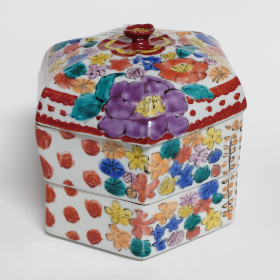 九谷焼 百花手風六角お重二段