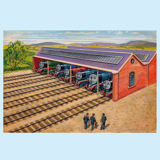 「3だいの機関車-エドワードのたのしい1日」の原画