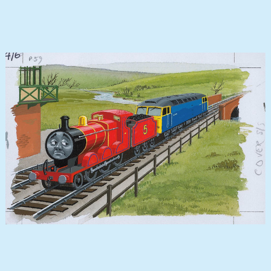 28巻「ジェームスとディーゼル機関車」の表紙原画
