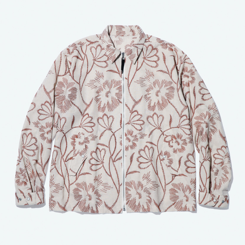 TOGA VIRILISの人気エンブロイダリーシリーズ。 コットンリネンのボディーにフラワーモチーフが刺繍された春夏らしいブルゾン。