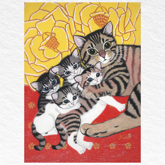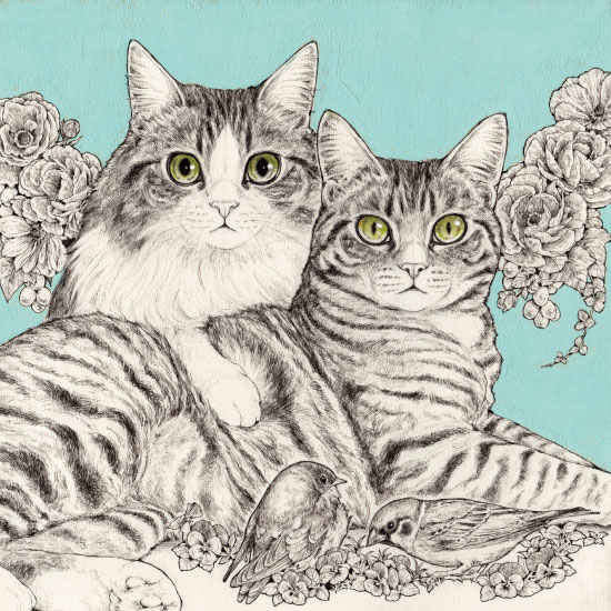 猫の持つ可愛さやフワフワの毛並み、凛とした表情を緻密に描いています。