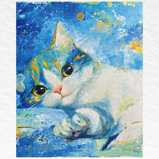 「あるがままに生きる」猫と、 生き物の原点たる「青」をメイン テーマにアート作品を展開してい ます。