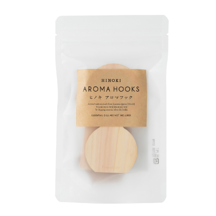 国産ヒノキの間伐材でできた3種類の形のフック型ディフューザー。お好みの精油を塗布して、柔らかく広がる香りを楽しめます。