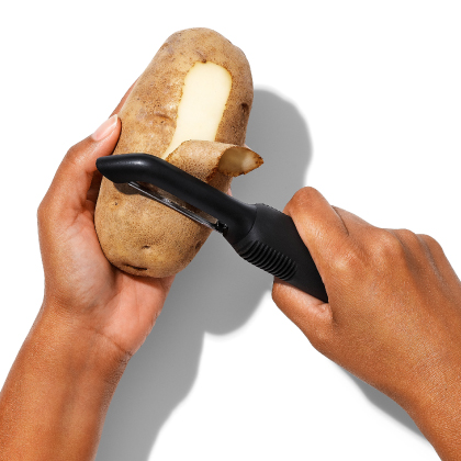 タテ型ピーラーは[OXO]の原点となった商品。切れ味の良いステンレス製刃を使用し、無駄なく皮の部分だけが綺麗に剥ける設計です。