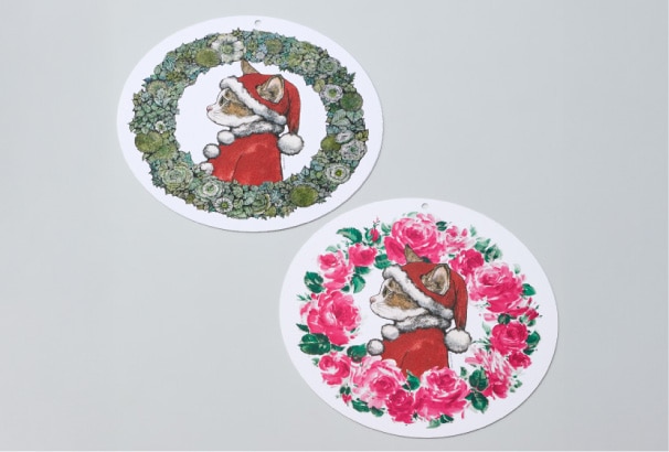 12月1日(月)から、対象売場・ブランドにて1回のお買上げが税込5,500円以上のお客様にヒグチユウコデザインの「オリジナルペーパーオーナメント」(径約20cm)を進呈いたします。
