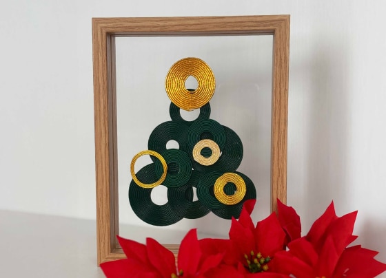 オリジナルクリスマスパネル製作。様々な水引の円を貼り合わせ、世界で一つのクリスマスパネルをお作りいただきます。