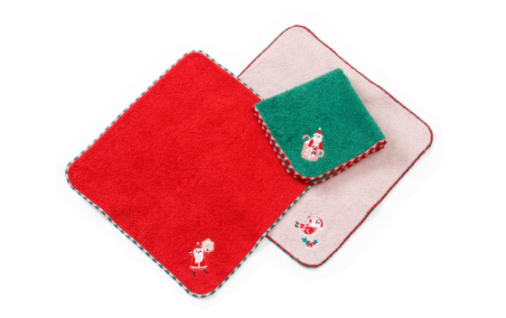 クリスマスパーティーをイメージしたサンタの刺しゅうが可愛いタオルハンカチです。
