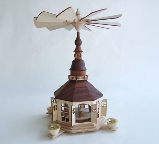 ろうそくに火を灯すとその熱の気流で、羽根やモチーフがゆっくり回り始めます。部屋の明かりを落とせばモチーフの影が部屋のあちこちで揺れて、幻想的な雰囲気が楽しめます。