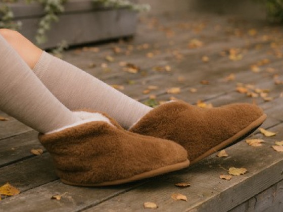 キャメル混ウールブーツタイプ室内履き