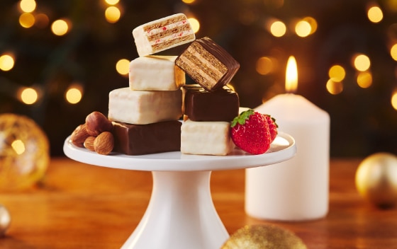 幾層にも重ねたサクサクのパイに、フレーズショコラ(ホワイトチョコクリーム・バニラ・苺クランチ)とプラリネショコラ(ビターチョコ・プラリネ・アーモンド・ヘーゼルナッツ)のクリームをサンド。2つの味のマリアージュを楽しめるクリスマス限定パッケージです。